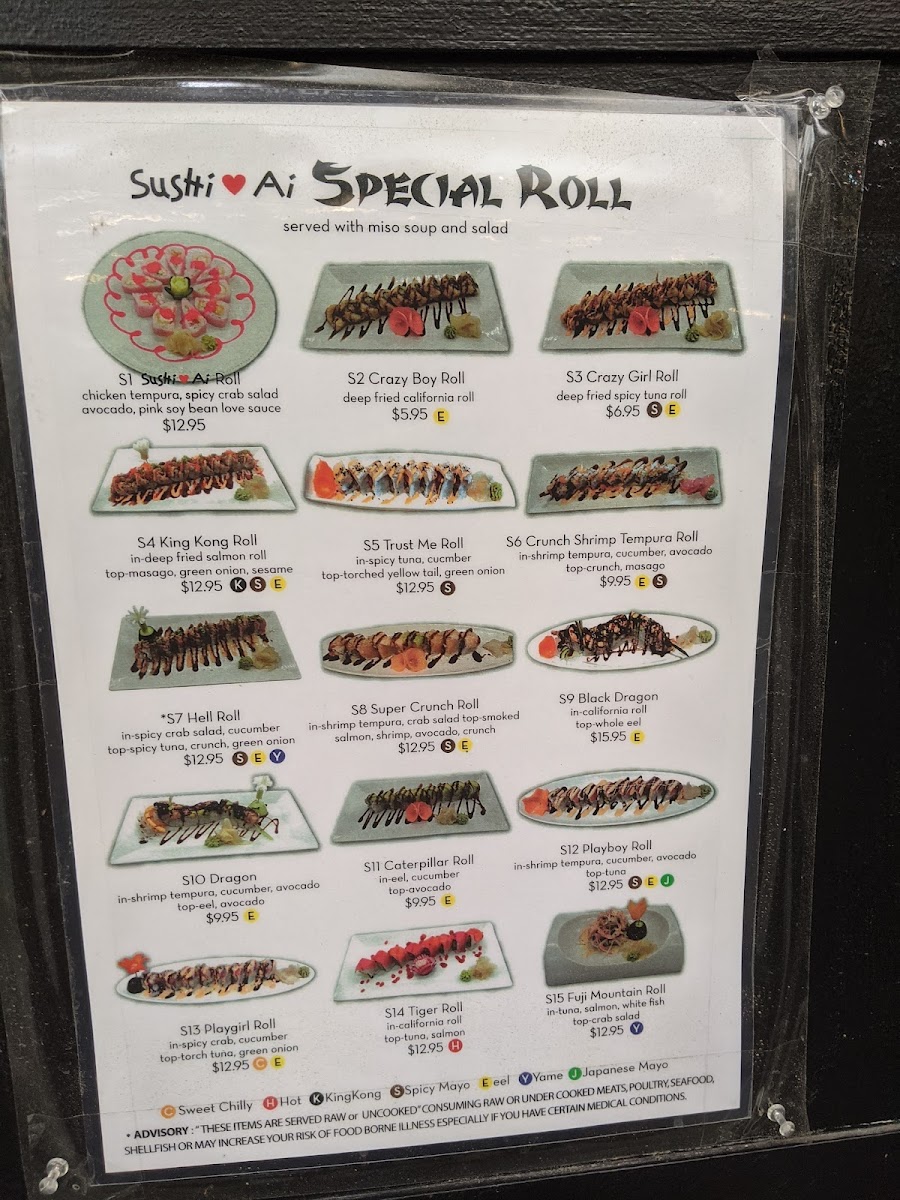 with green onion, masago, special sauce and sesame